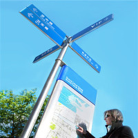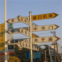 指路牌,為方便市民出行、導示、辯分方向等,在道路兩旁或綠化帶上建設的交通設施。由于城市公交的日益發達,指路牌已發展成為城市一個不可或缺的重要組成部分。 指路牌矩形結構,合金材質,藍白相間的色彩,貼有反光膜。 指路牌 1.a signpost; a fingerpost; a guidepost; a destination board 漢語:指路牌漢語解釋:1.標明交通路線或地名的牌子。來源詞典:漢語大詞典 一、指路牌樣式 牌面及字體顏色:上方藍底白字(綠底白字),下方白底黑字。 上方綠底面積占牌面總高度2/3,下方白底面積占牌面總高度1/3 立桿顏色:銀灰色 指路牌尺寸 1、版面尺寸。 ①主干道:1500mm*450mm(總高3000mm) 、诖胃傻溃1200mm*360mm(總高2500mm) 立桿尺寸 ①主干道立桿尺寸:單根直徑89mm熱度管,牌面底部距地面2500mm 、诖胃傻懒U尺寸:單根直徑76mm熱度管,牌面底部距地面2140mm 3、字體大小按照國家地名標準比例 |